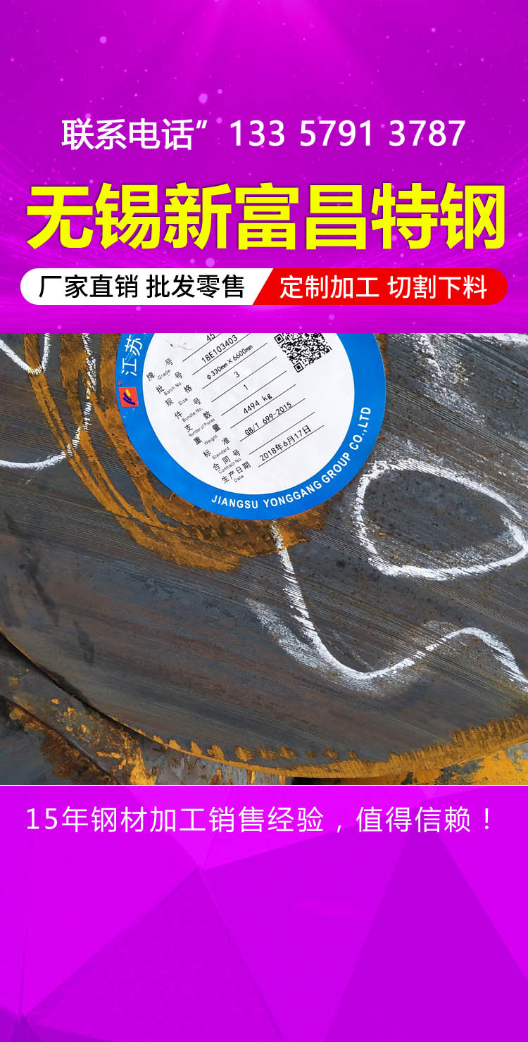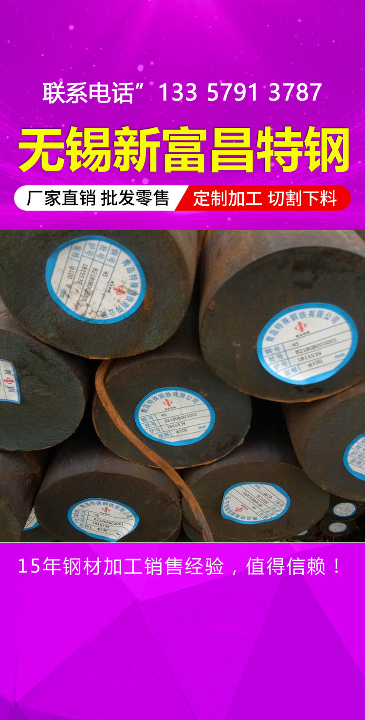 無錫新富昌特鋼有限公司主要以現貨的形式經營全國各大鋼廠生產的圓鋼,各種不銹鋼,鋼板,無縫鋼管,焊管,螺旋管等合金鋼、模具鋼、工具鋼??蔀橛脩艏庸どa材質型號熱軋圓鋼及冷拉圓鋼。并可長期現貨供應各種規格熱軋圓鋼、冷拉圓鋼及常年所代理公司的各種規格圓鋼。我公司還加工各種冷拔熱軋圓鋼。可根據客戶需要的材質、規格加工成不同的尺寸!并可定做各種材質各種規格的非標圓鋼!產地:撫鋼、鋼、凌鋼、長城特鋼、西寧特鋼、大冶、寶鋼、本鋼、通鋼、攀鋼集團、太原鍛鋼、德國、日本的圓鋼。產品名稱:(特鋼)不銹鋼、合結鋼、模具鋼、軸承鋼、齒輪鋼、高速鋼、碳結鋼、碳工鋼、合工鋼、碳素鋼、易削切鋼、合金鋼的元鋼、方鋼、方坯、鋼錠、鍛件等。材質:Q195圓鋼、A3圓鋼、Q235圓鋼、10#圓鋼、20#圓鋼、35#圓鋼、45#圓鋼、60#圓鋼、80#圓鋼、20Mn圓鋼、 45Mn圓鋼、50Mn圓鋼、65Mn圓鋼、S50C圓鋼、K40圓鋼、T8圓鋼、T10圓鋼、Q34圓鋼、Q345B圓鋼、Q345C圓鋼、Q345D圓鋼、Q345E圓鋼、 16MnCR4圓鋼、20Cr圓鋼、35Cr圓鋼、40Cr圓鋼、27SiMn圓鋼、15CrMo圓鋼、20CrMo圓鋼、35CrMo圓鋼、42CrMo圓鋼、45CrMo圓鋼、 42CrMo4圓鋼、 42CrMoA圓鋼、20CrMnMo圓鋼、20CrNiMo圓鋼、8Cr3圓鋼 、10CrMo910圓鋼、20CrMoTi圓鋼、30CrMnTi圓鋼、12Cr1MoV圓鋼、 18Cr2Ni4W圓鋼 18Cr2Ni4WA圓鋼、20CrMnSi圓鋼、20CrNi圓鋼、20CrNi3圓鋼、40CrNi圓鋼、50CrNi圓鋼、30CrNiMo8圓鋼、30CrMnSi圓鋼、 34CrNiMo6圓鋼、 36CrNiMo4圓鋼、38CrMoAL圓鋼、40CrNiMoVA圓鋼、45CrNiMoVA圓鋼、45CrNiMoV圓鋼、40Cr2Ni2Mo2圓鋼、36CrNiMo4圓鋼、 38CrMoAl圓鋼、Cr4W2MOV圓鋼7CrSiMnMoV圓鋼 12CrMoV圓鋼、9Cr18MoV圓鋼、5CrNiMo圓鋼、9Cr2Mo圓鋼、3Cr2W8V圓鋼、4Cr9Si2圓鋼、 25Cr2MoV圓鋼。我公司以高起點占領市場,高效率降低成本,高質量回報客戶,在帶給您*流產品的同時,也奉獻著*流的服務。公司以可靠的信譽和雄厚的資金實力樹立了良好的企業形象,匯聚了行業內的大量專業人才,公司核心管理團隊擁有多年的行業經驗以及對鋼鐵行業發展的深入了解,憑借成熟穩健的管理團隊,經驗豐富的營銷隊伍,全面完善的服務體系及良好的用戶信譽,為客戶提供品質卓越的全方位服務。