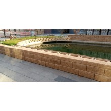 劈離砌塊的劈離面,因組成材料的內聚力和粘附力不同,成為凹凸不平的斷面,有著粗獷、古樸的質感,又因采用不同顏色的顏料、色質集料、外加物以及不同的配合比,可仿各種天然石材的色澤和紋理,因此,裝飾效果比較理想。