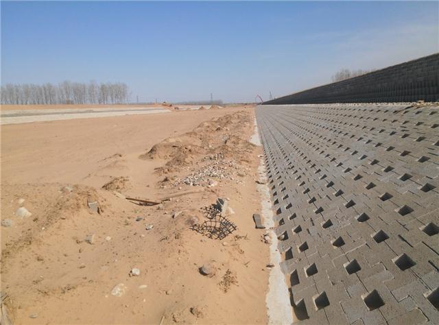 實踐表明, 欽芃建材生產的WE自然砌塊系統不僅具有自重大、抗傾覆能力強等結構方面的優勢, 尚可利用機械安裝, 大大提高施工效率和安裝精度, 節約人力和降低勞動強度。鋪設在鋪有土工布地基上的WE自然砌塊系統具有良好的滲水性, 能有效減小流體壓力, 保護河岸不受流體侵蝕,并具有良好的反濾效果; 抗沖刷能力強, 高速水流以及其他惡劣環境下能夠保持鋪面的完整性, 從而有效提高河岸的抗水流侵蝕能力。具有其它柔性鋪面材料所有的優點, 如空隙率高, 透水性好, 各單獨塊之間和單塊內的空隙內可以植草, 美化環境的同時形成自然坡面, 改善自然環境; 對水流情況下的小規模變形( 由沉陷、結冰、滑坡、膨脹土等引起的) 具有高度的適應性;施工簡便, 既可人工鋪設也可采用機械化施工。