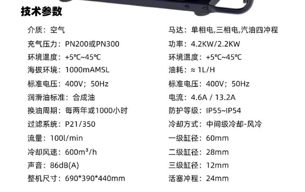 440V/60HZ寶華Junior II-E船用SCBA充氣空壓機技術(shù)參數(shù):