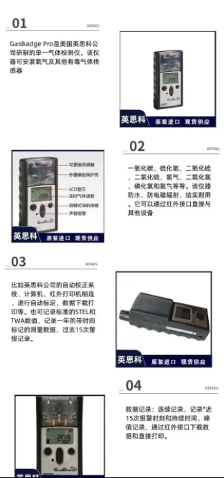 便攜式氨氣檢測儀,英思科GB Pro NH3 0~500ppm氨氣檢測報警器【 186馬6019科6936 】通過紅外接口直接向選配附件通信,如Docking Station?、數(shù)據(jù)連接(Datalink)、及紅外打印機(jī),繼續(xù)簡化并自動化標(biāo)定過程、功能(沖擊)測試及數(shù)據(jù)下載。標(biāo)準(zhǔn)短期暴露水平(STEL)、時間加權(quán)平均值(TWA)及長達(dá)一年的調(diào)查數(shù)據(jù)記錄功能,另配有可記錄近15次告警事件的事件記錄器。