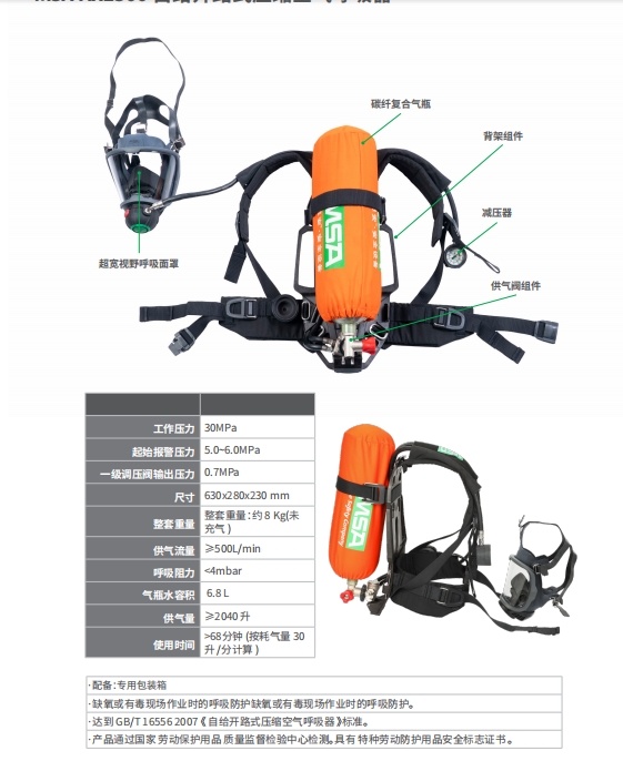MSA梅思安6.8L空呼AX2300瓶閥瓶表自給式空氣呼吸器