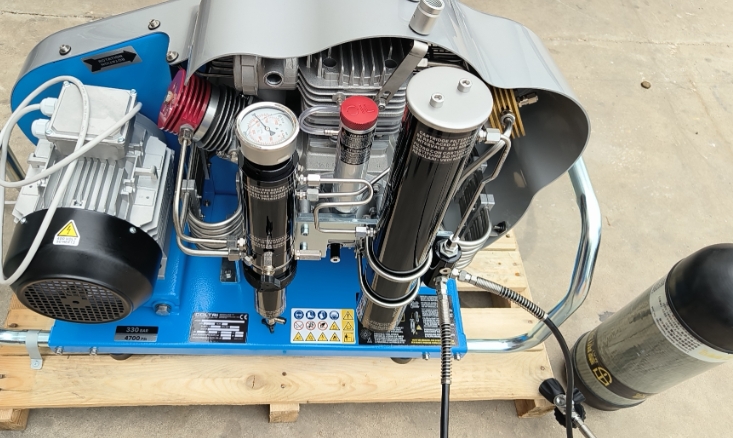 當您開始使用空氣充氣泵時,首先應檢查充氣泵的潤滑油的液位。打開充氣泵總電源開關,然后開啟壓縮機電源開關。開始工作時,要關注下檢查壓縮機轉動方向。如果發生異常,停機檢查,如果機器運轉正常,打開冷凝水排放閥。關閉排放閥和充氣閥,將氣瓶與充氣閥連接。打開呼吸空氣充氣泵充氣閥、打開氣瓶閥,充氣開始。當充氣壓力表上升到30Mpa時,充氣結束。關閉空氣呼吸器充氣泵氣瓶閥、關閉充氣閥,并瀉掉充氣閥中的高壓氣體。取下氣瓶,關閉電源開關停機。從充氣閥和冷凝水排放閥卸掉高壓氣體。