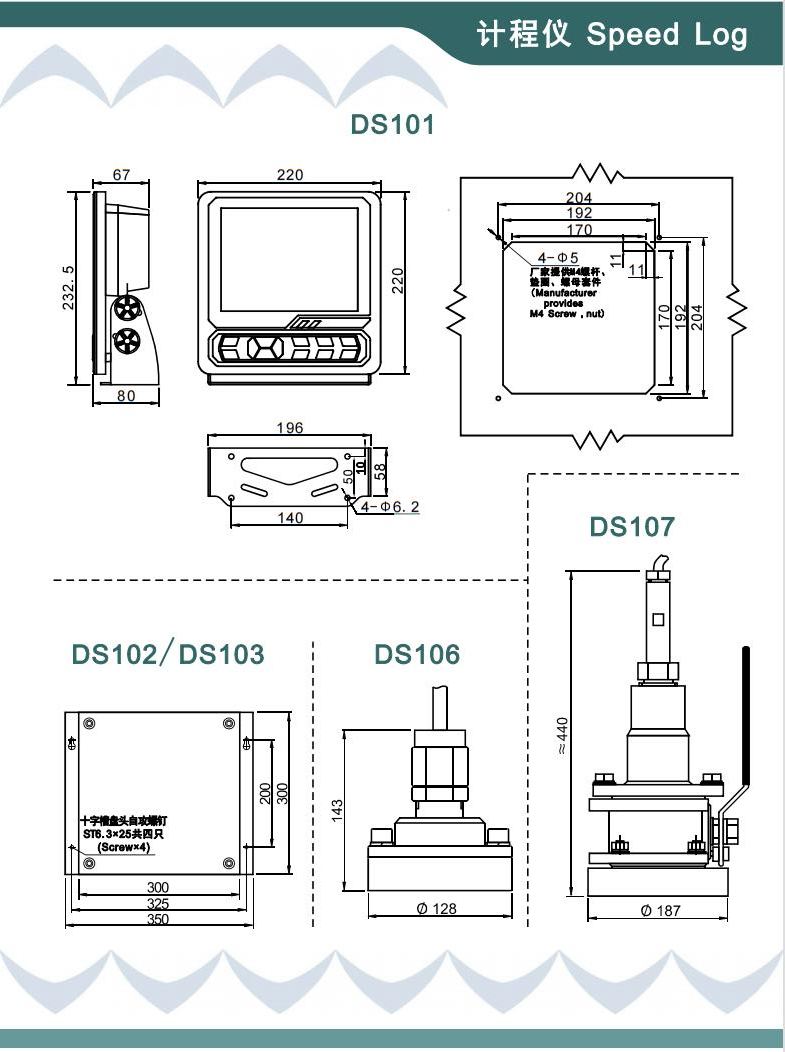 配置清單:DS101顯示單元、DS102控制單元、DS103收發單元、DS104傳感器探頭、DS107海底閥、DS106導流罩、(備注:海底閥\導流罩,二選一)