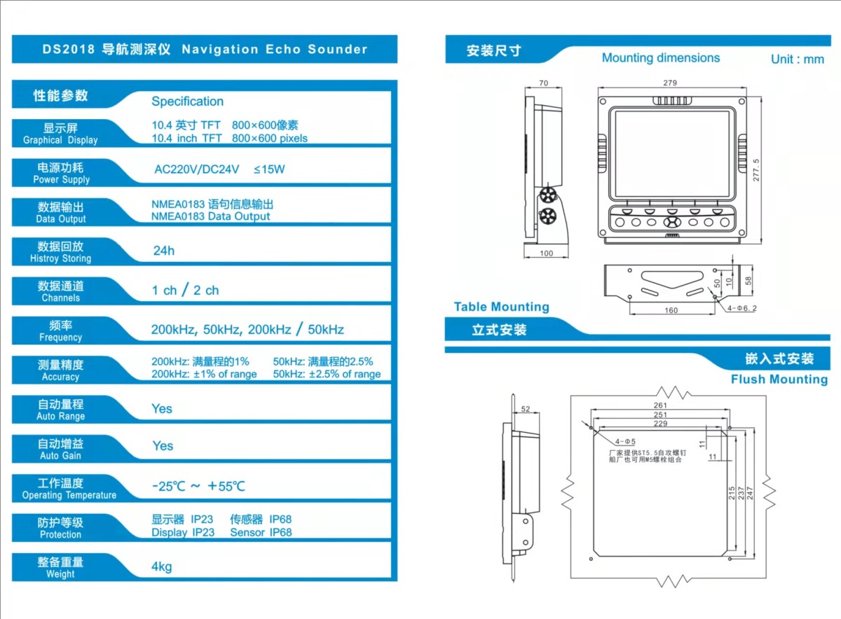 DS 2018船用10英寸回聲測深儀 含探頭導流罩CCS船檢
