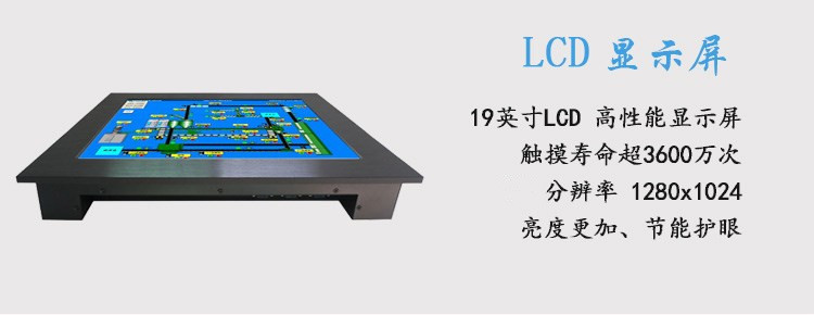整機配置19寸寬溫、高亮度LED液晶顯示屏,集成工業級低功耗嵌入式主板,支持SSD、HDD,具有多個I/O接口,電阻式觸摸屏可選; 19寸LED顯示屏,并具有待機節能模式。