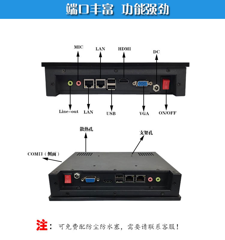 4.電腦12V/5A供電,出廠配有12V5A電源適配器.(可選擇9~24V寬壓)