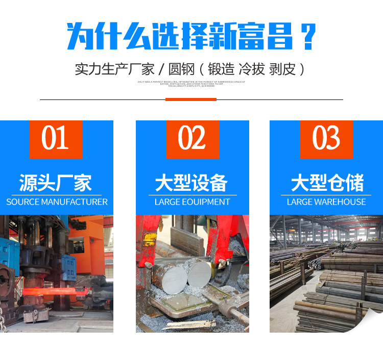 無錫新富昌特鋼有限公司主要以(庫存)的形式經營寶鋼 東北特鋼 淮鋼 石鋼 永鋼 湘鋼 萊鋼 凌鋼 中天 新興等廠家生產的SAE4330V圓鋼及鍛圓、冷拉圓鋼、調質圓鋼、剝皮圓鋼,并提供校直、研磨、零割、倒角等圓鋼加工定做一站式服務。具備成熟的生產和加工經驗,擅長處理多種材質、型號、外徑形狀的原材料。可根據客戶需要的材質、規格切割成不同的尺寸數控零切割下料。并可定做各種材質各種規格的冷拉圓鋼、方鋼、扁鋼、六角鋼、扭曲的鋼和各種規格的異型鋼產品:4-70mm之間的主要規范,以及各種規格的冷拉圓鋼(4-60mm)、方鋼(5×5mm-60×60mm),六角鋼鐵(7-70mm),扁鋼(2×10mm-35×100mm)和異形鋼產品,規格4mm-60mm之間。同時,新富昌公司擁有多臺進口加工中心設備,為客戶提供精細加工。公司技術力量雄厚,生產經驗豐富,質量體系完善。所生產的產品深受廣大消費者的青睞,使產品繼續銷往國內各地。