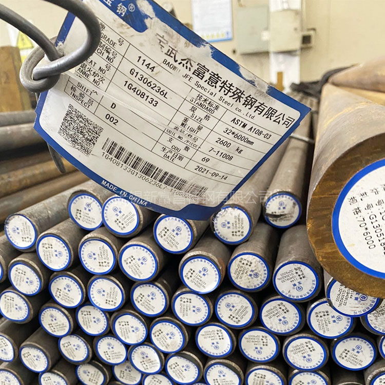 1144圓鋼是高硫中碳易切削鋼,類似于國標的Y40Mn鋼,可以直接淬火。1144鋼是一種含錳和硫的中碳高硫碳鋼,有較好的切削性能,與45號鋼相比可提高刀具壽命四倍,提高生產效率30%,有較高的強度和硬度,適于加工要求剛性高的零件,如絲杠、光桿、齒條和花鍵軸等。
