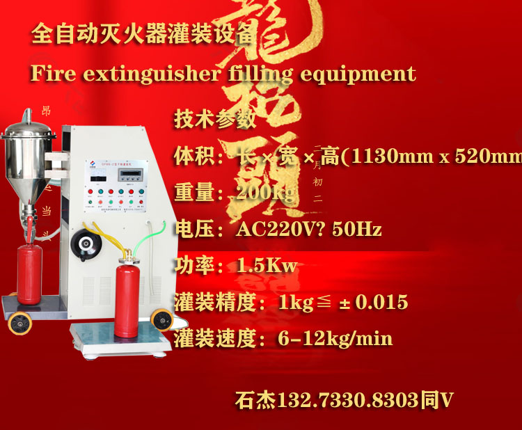 更新信息 快采購網供應商衡水威普曼裝備制造有限公司供應干粉滅火器灌裝機,為您提供詳細的產品報價、參數、圖片等商品信息,本產品于2025-02-24 16:56更新,主要更新內容為:產品類別、產品參數、產品價格、產品圖片等信息。如需進一步了解干粉滅火器灌裝機詳細信息,請與廠家直接聯系,并說明是在快采購網看到這條商機的。
