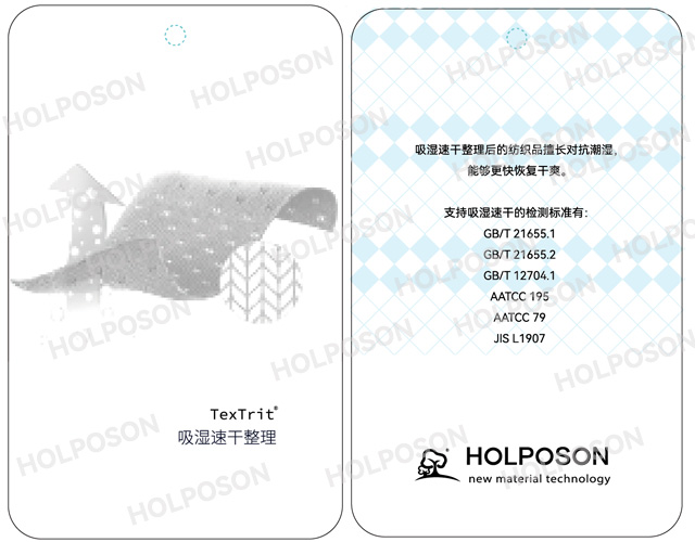 HOLPOSON? Aquasoft適用于棉及混紡織物的吸濕速干功能整理劑,經(jīng)本品處理后的織物,具有優(yōu)良的手感,同時(shí)賦予纖維素纖維及混紡織物具有良好的親水、吸濕排汗性能。HOLPOSON? Aquasoft賦予天然纖維及其混紡織物優(yōu)良的吸濕特性,用于絨類織物手感柔軟、蓬松.