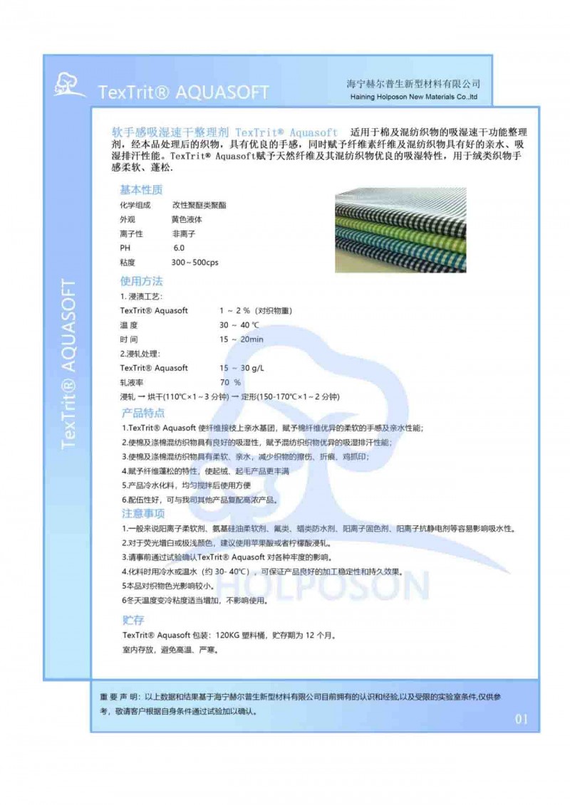 HOLPOSON? Aquasoft 1~ 2 %(對(duì)織物重)