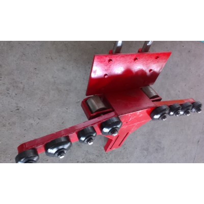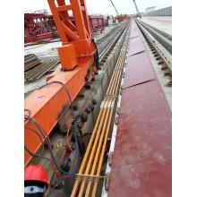 行車軌道側(cè)面開設(shè)地溝,地溝內(nèi)安裝安全滑觸線,地溝上鋪有單面用鉸鏈固定于地面上的蓋板。吊車運行時通過安裝在平板車上的地溝翻板裝置,將蓋板掀起,翻板裝置內(nèi)裝有同安全滑觸線集電器連接的電纜。通過集電器與安全滑觸線的移動供電給平板車上的電機供電,使電機運轉(zhuǎn),以達到驅(qū)動平板車不斷向前運動.軌道平板車通過后蓋板自動放回地面,能保證車輛順利通過,地溝翻板滑觸線型電動軌道平車,不受運行距離的限制,不會影響車輛的運行速度,滑動靈活,安全可靠,故障率較低。適合大噸位、長距離運輸方案的選用。