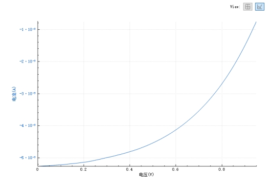 上位機上選擇序列掃描功能,選擇電壓源模式,設置0-VOC的掃描范圍,設置限值,勾選功率測試,點擊運行,即可得到正向偏壓的V-I圖像以及功率變化曲線。