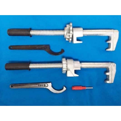 a:式鎖器,先把鎖器調到短處,鎖器下卡槽處卡在基本軌底邊,絲端部對準斥離軌,調節(jié)中部絲桿到斥離軌,后用鉤型扳手扭緊,再把防松螺母鎖緊,后把防盜罩蓋上,上鎖鎖閉。拆除時反方向程序進行。