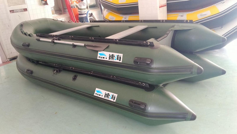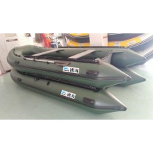 (4)配可拆式木板與鋁合金底板,掛機艇艇殼氣囊采用膠粘與高周波熱合工藝加工制作,氣密好、強度高、經久耐用、質量1流,航速40-60公里/小時。充氣后可保持至少一周。
