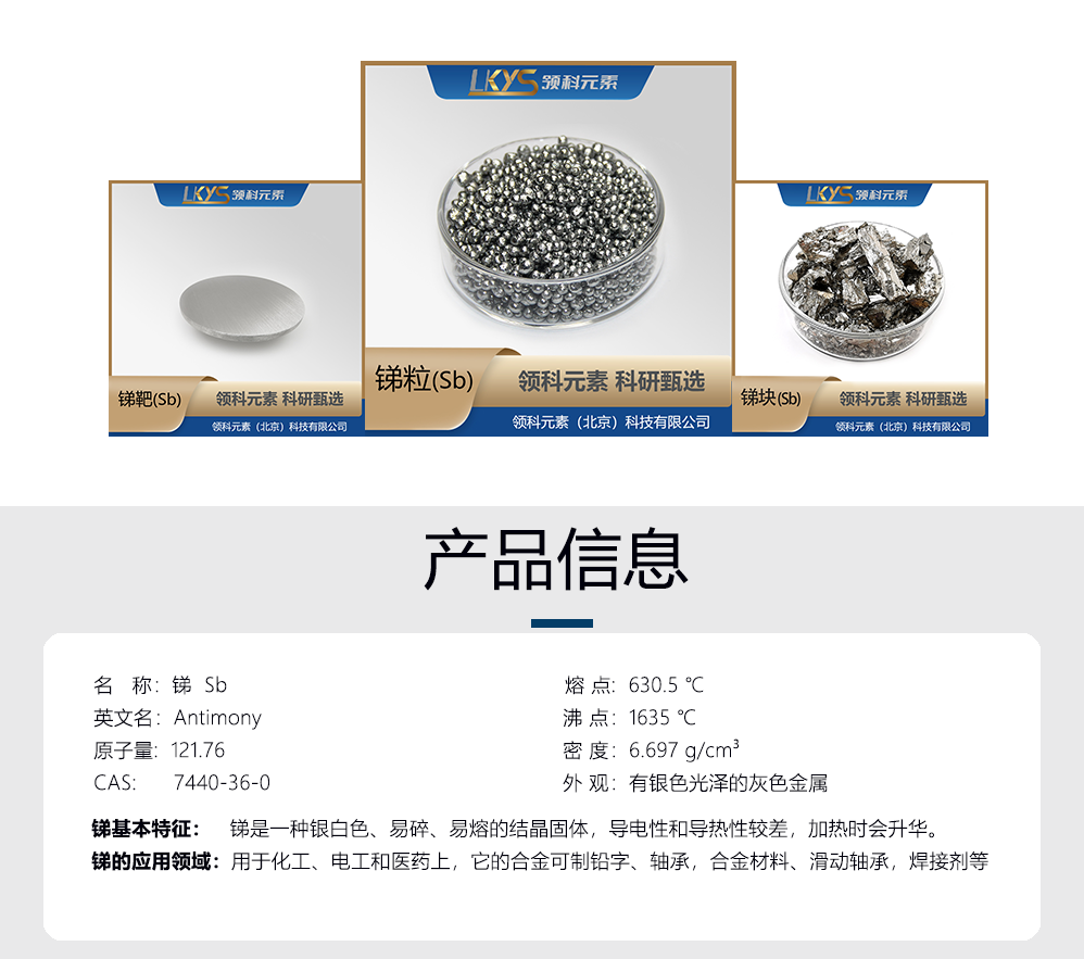 更新信息 快采購網供應商領科元素(山東)技術有限公司供應銻粒 高純銻 類球狀銻 99.99%純銻科研專用,為您提供詳細的產品報價、參數、圖片等商品信息,本產品于2025-03-31 22:54更新,主要更新內容為:產品類別、產品參數、產品價格、產品圖片等信息。如需進一步了解銻粒 高純銻 類球狀銻 99.99%純銻科研專用詳細信息,請與廠家直接聯系,并說明是在快采購網看到這條商機的。