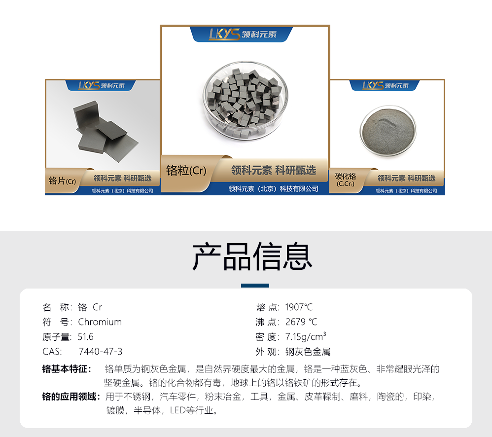 更新信息 快采購網供應商領科元素(山東)技術有限公司供應鉻粒 高純鉻 99.95%純鉻顆粒 科研專用,為您提供詳細的產品報價、參數、圖片等商品信息,本產品于2025-03-31 22:54更新,主要更新內容為:產品類別、產品參數、產品價格、產品圖片等信息。如需進一步了解鉻粒 高純鉻 99.95%純鉻顆粒 科研專用詳細信息,請與廠家直接聯系,并說明是在快采購網看到這條商機的。