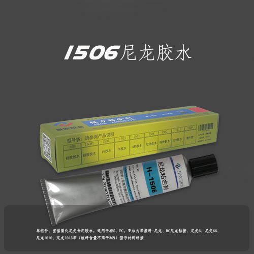 JINGHONG景宏 H-1506PA膠水-為單組份、室溫固化尼龍專用膠水,適用于ABS、PC,亞加力等塑料-尼龍、MC尼龍粘接、尼龍6、尼龍66、尼龍1010、尼龍1013等(玻纖含量不高于30%)型號材料粘接;具有優異的粘接性(>PA66-GF20%<可達尼龍材質本身強度,)耐腐蝕性和耐侯性、耐高低溫等特點。
