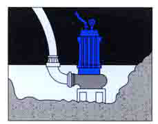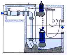 適用于長(zhǎng)期固定的使用場(chǎng)合,具有安裝、維修方便等優(yōu)點(diǎn)。該系統(tǒng)使用的底座,固定在污水坑的底部,與出水管連結(jié)好,在池頂安裝好配套的支承塊,用導(dǎo)桿使二者相連,水泵與特定支架連結(jié)好,沿導(dǎo)桿下滑到達(dá)底座,與其自動(dòng)耦合、密封、密封,而提升時(shí)則自動(dòng)脫落。