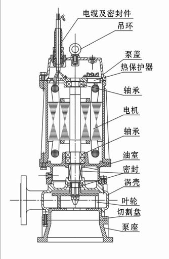 三利·WQ/S型帶刀切碎式潛水排污泵結(jié)構(gòu)圖