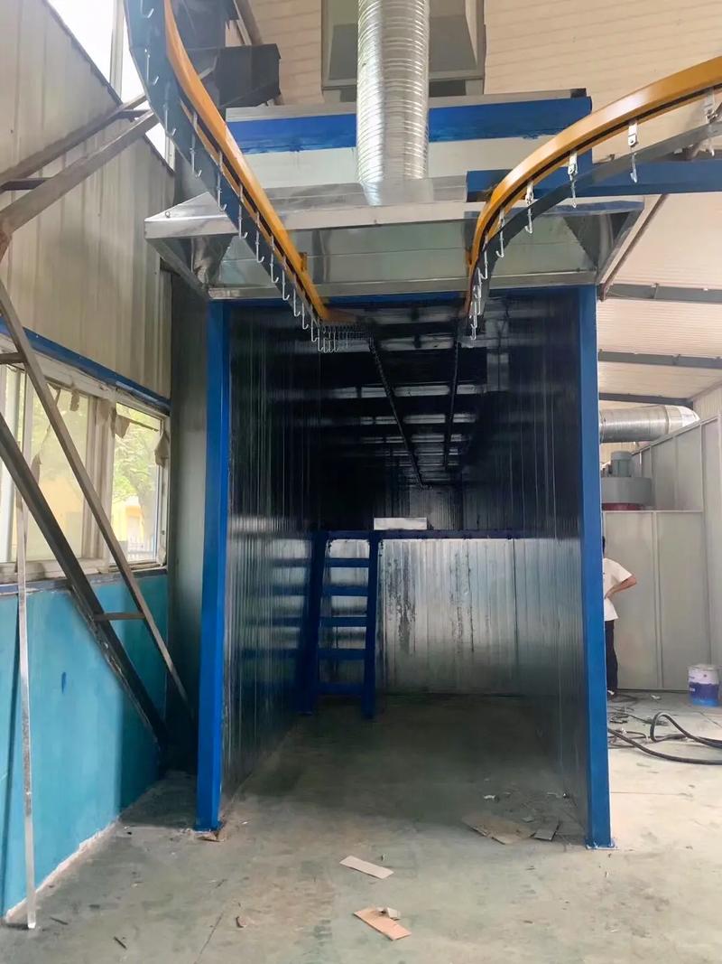 2. 噴粉房:是噴塑操作的主要場所,為封閉式結構,內部設有噴槍和粉末回收裝置。噴槍將塑粉噴涂到工件表面,粉末回收裝置則可回收未附著在工件上的塑粉,提高粉末利用率,同時保持工作環境的清潔。