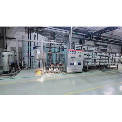 為滿足用戶需要,達(dá)到符合標(biāo)準(zhǔn)的水質(zhì),盡可能地減少各級(jí)的污染,延長(zhǎng)設(shè)備的使用壽命、降低操作人員的維護(hù)工作量.在工藝設(shè)計(jì)上,取達(dá)國(guó)家自來(lái)水標(biāo)準(zhǔn)的水為源水,再設(shè)有介質(zhì)過(guò)濾器,活性碳過(guò)濾器,鈉離子軟化器、精密過(guò)濾器等預(yù)處理系統(tǒng)、RO反滲透主機(jī)系統(tǒng)、離子樹(shù)脂混床(EDI電除鹽系統(tǒng))系統(tǒng)等。 系統(tǒng)中水箱均設(shè)有液位控制系統(tǒng)、水泵均設(shè)有壓力保護(hù)裝置、在線水質(zhì)檢測(cè)控制儀表、電氣采用PLC可編程控制器,真正做到了無(wú)人職守,同時(shí)在工藝選材上采用推薦和客戶要求相統(tǒng)一的方法,使設(shè)備與其它同類產(chǎn)品相比較,具有更高的性價(jià)比和設(shè)備可靠性。