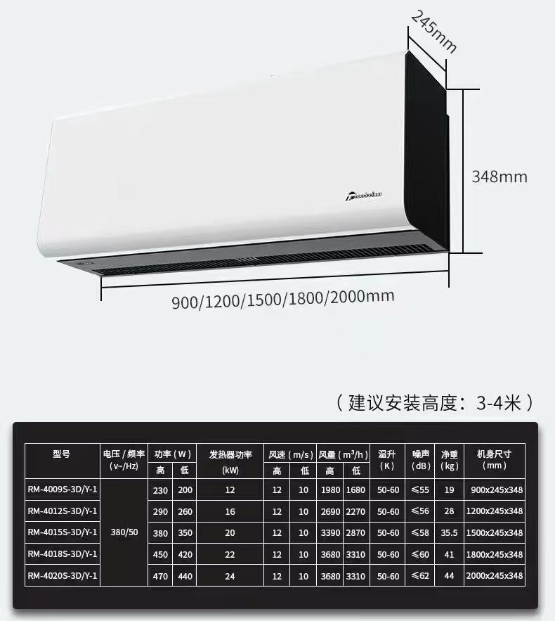 北京西奧多Theodoor商場風幕機/超市電加熱空氣幕/機場風簾機/地鐵門頭RM-4009S-3D/Y-1 RM-4012S-3D/Y-1 RM-4015S-3D/Y-1