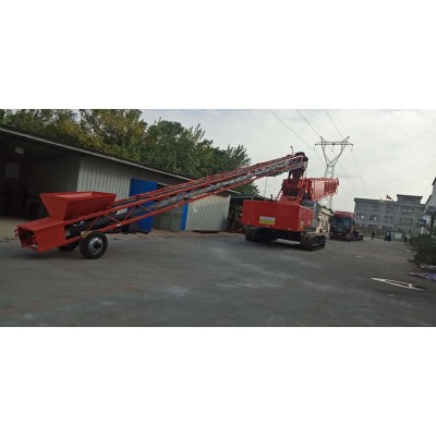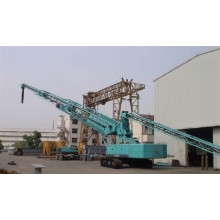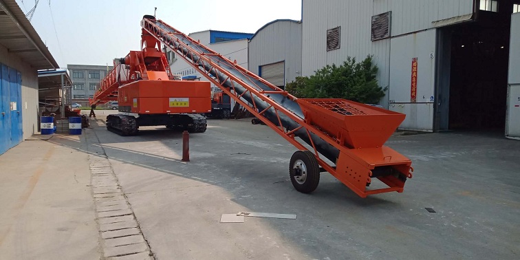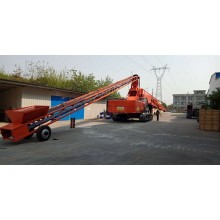 該型布料機(jī)主要通過液壓履帶式配重機(jī)底盤系統(tǒng)總成液壓動力系統(tǒng)輸出的動作,使該整機(jī)系統(tǒng)可靠的完成自由行走、轉(zhuǎn)場,布料臂架仰、俯變幅,布料臂架360°回轉(zhuǎn)驅(qū)動等動作。布料臂架伸縮和皮帶機(jī)驅(qū)動動作的源動力,采用底盤自帶液壓系統(tǒng)驅(qū)動(也可以采用外接380V電源驅(qū)動)。布料伸縮臂架式皮帶機(jī)為可伸縮的高速皮帶機(jī),由三節(jié)桁架組成,伸幅為42米,仰角水平長度為18米。