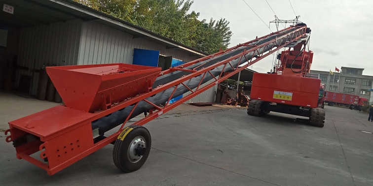 上料皮帶機(jī)為桁架式矩形結(jié)構(gòu),長度為18m。由桁架、槽型托滾、平行托滾、改向滾筒、驅(qū)動滾筒、驅(qū)動裝置(液壓馬達(dá)或電動機(jī))、環(huán)型皮帶、頭部清掃器和尾部清掃器等組成。上料皮帶機(jī)通過回轉(zhuǎn)料斗與底盤連接在一體,組裝好后與水平成15~18°夾角。皮帶機(jī)的驅(qū)動和連接采用與布料皮帶機(jī)相同驅(qū)動和連接方式,以達(dá)到速度協(xié)調(diào)。通過改變電機(jī)(電機(jī)通過變頻)轉(zhuǎn)速實現(xiàn)調(diào)速。