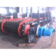 輸送帶為鋼絲繩芯輸送帶,抗拉強(qiáng)度大,適用于承載和輸送高粘度、高濕度、大塊重的特殊原料。輸送帶鋪設(shè)在龍骨上,因而,能承受貯料倉倉壓、抵抗大塊物料的沖擊。