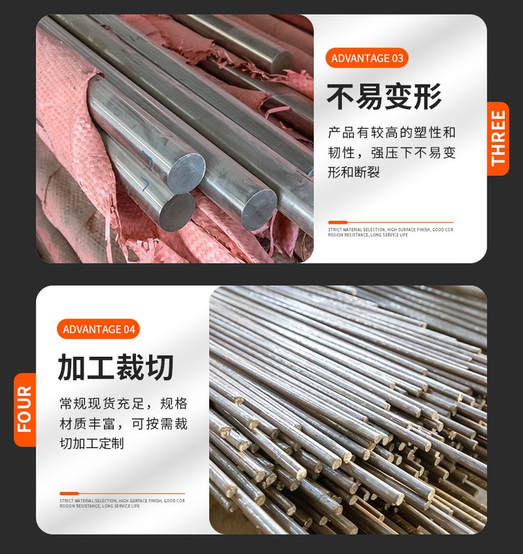?303不銹鋼圓鋼是一種高性能的奧氏體不銹鋼材料,主要用于易切削和表面光潔度高的場(chǎng)合?。303不銹鋼圓鋼的主要成分包括碳、硅、錳、磷、硫、鉻和鎳等元素,其中硫和硒的添加有助于提高其切削性能和抗高溫粘結(jié)性能?。