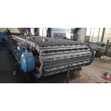 卸料區(qū)段   采用上托鏈輪、中部重軌組合式支重,輪布置密度大,能承受較大沖擊載荷