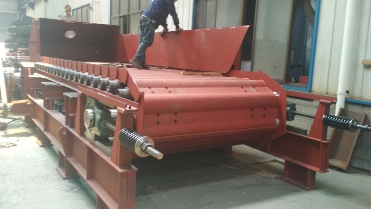 機架作為承載機構,安裝在水泥或鋼板基礎上。板式給料機較短時(小于10米)整體制作和發貨,如果長度操過10米,通常采用分段制作,用戶現場組裝。