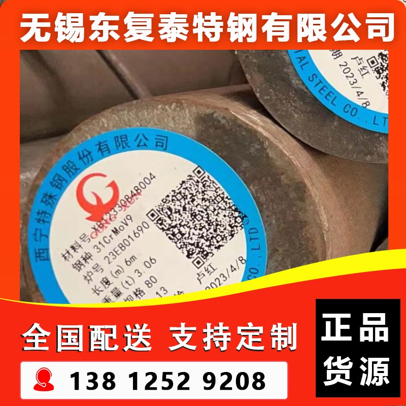 ?31CrMoV9圓鋼是一種合金結(jié)構(gòu)鋼,屬于氮化合金結(jié)構(gòu)鋼,具有高強(qiáng)度、良好機(jī)械性能及抗晶間腐蝕性能??。其化學(xué)成分包括碳(C)0.27~0.34%,硅(Si)≤0.40%,錳(Mn)0.40~0.70%,硫(S)≤0.035%,磷(P)≤0.025%,鉻(Cr)2.30~2.70%,鉬(Mo)0.15~0.25%,釩(V)0.10~0.20%?。