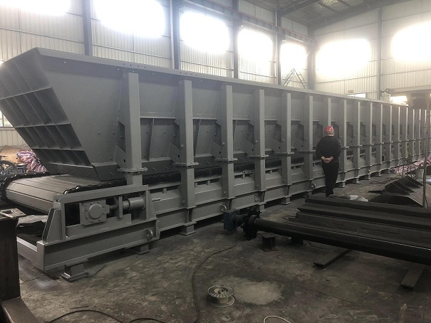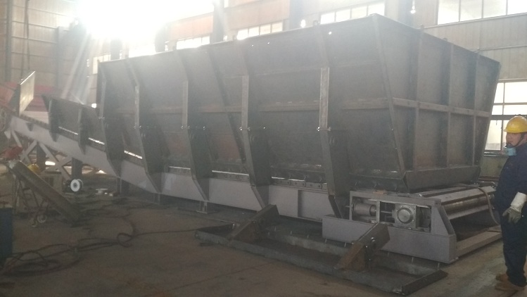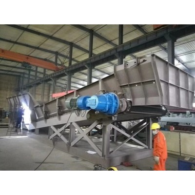 a. 以0.06―0.075m/s速度運轉為宜。切忌儲倉內物料空倉。當來料少時,允許間歇操作。給料須均勻,避免大塊料沖砸槽體,而避免槽體的變形和設備的歪斜。