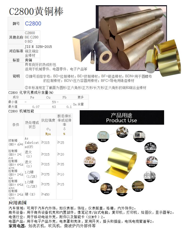 • B36 C23000黃銅板材、帶材 H85軋制棒材 (用于導(dǎo)電端子