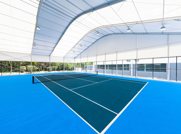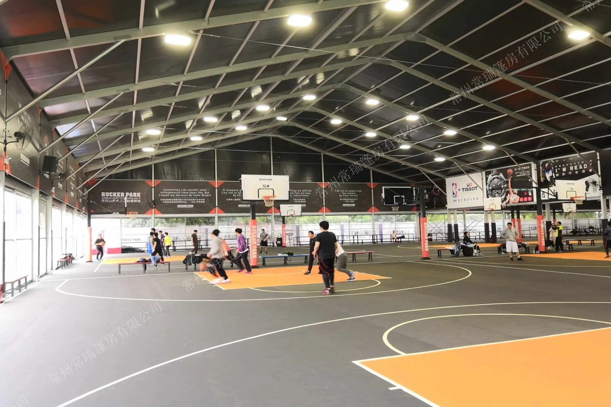 體育篷房應用于籃球場,在原有籃球場的基礎上,搭建一個篷房,使得籃球活動不受天氣影響。我們可提供的篷房跨度從3-60米跨度范圍,接受訂制,長度以3米或者5米為一個單位。內部空間讓運動員們可以盡情的揮灑汗水,并且考慮到激烈運動時不宜吹空調原因。