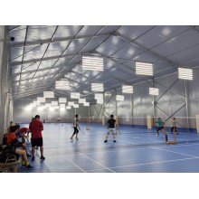 體育篷房應用于籃球場,在原有籃球場的基礎上,搭建一個篷房,使得籃球活動不受天氣影響。我們可提供的篷房跨度從3-60米跨度范圍,接受訂制,長度以3米或者5米為一個單位。內部空間讓運動員們可以盡情的揮灑汗水,并且考慮到激烈運動時不宜吹空調原因。