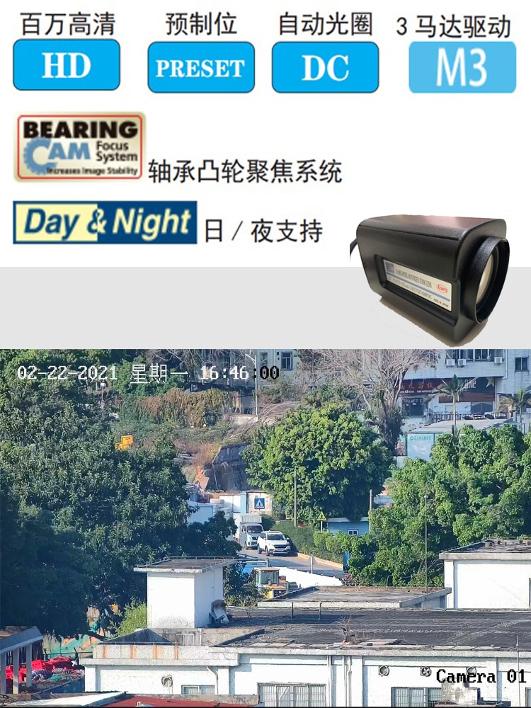 1.運用低色散、高折射玻璃,憑借獨特的精密加工和裝配技術,達到了高度的光學性能,實現了可對應300萬像素攝像機的超高清晰影像