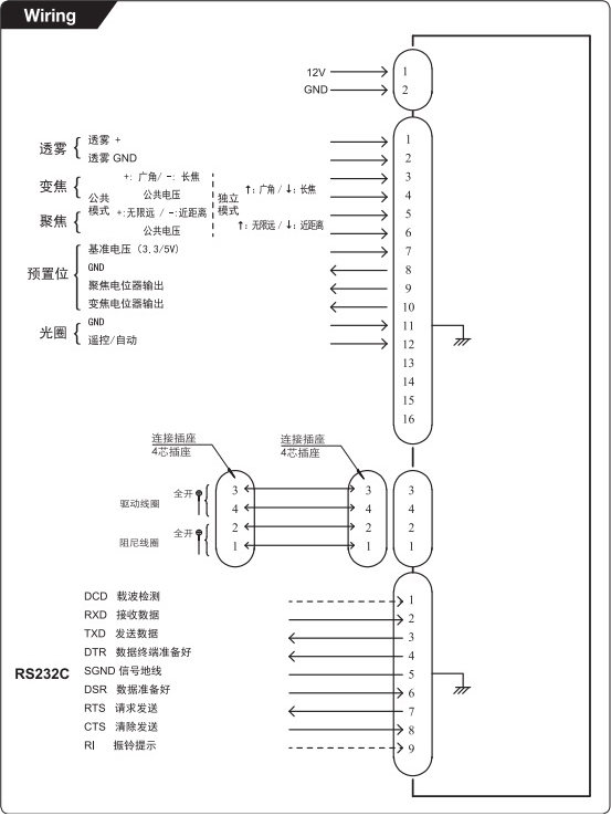 5.配備支持多種多樣系統的控制接口 鏡頭控制支持模擬控制和串口通信控制兩種,可根據系統選擇適合的控制接口。 串口通信控制除了FUJINON的獨有協議“C10”,還支持通用協議“Pelco-D”。