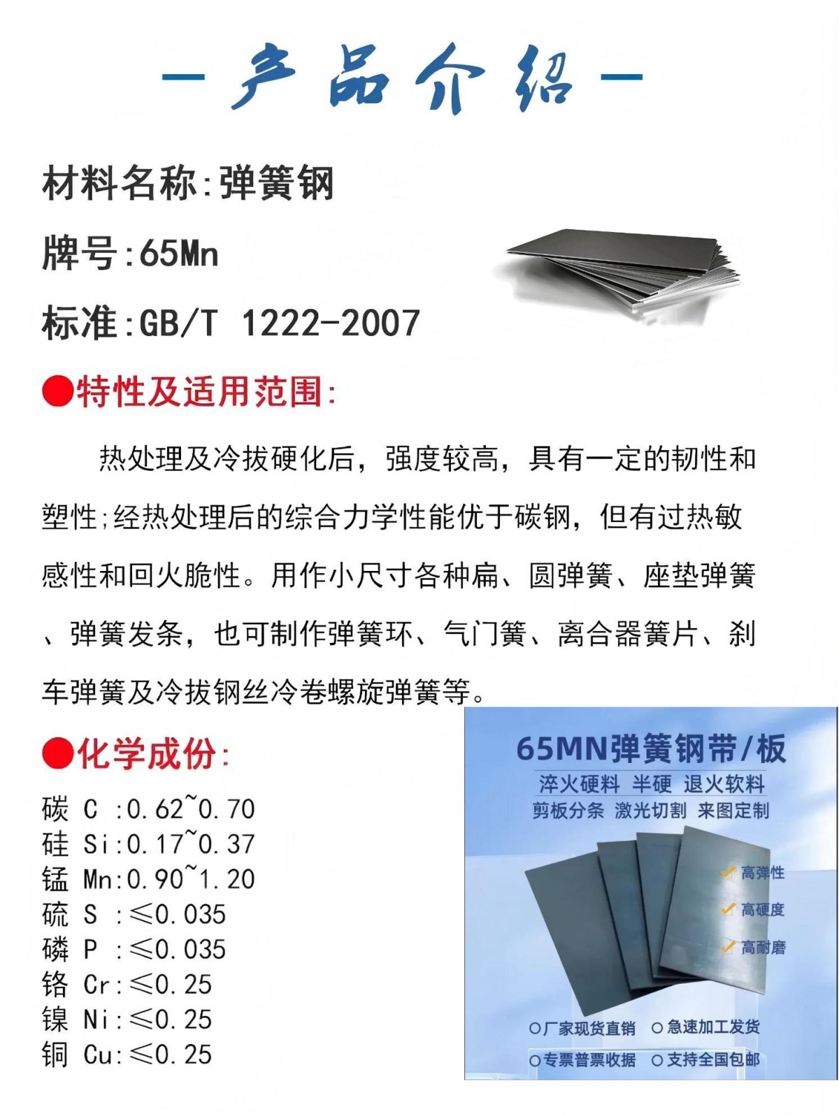 更新信息 快采購網供應商東莞市長安冶韓金屬材料行供應65Mn冷軋軟料大板50Crv彈簧鋼板0.8-60mm厚錳鋼淬火硬料0.15-5.0mm,為您提供詳細的產品報價、參數、圖片等商品信息,本產品于2025-11-10 08:53更新,主要更新內容為:產品類別、產品參數、產品價格、產品圖片等信息。如需進一步了解65Mn冷軋軟料大板50Crv彈簧鋼板0.8-60mm厚錳鋼淬火硬料0.15-5.0mm詳細信息,請與廠家直接聯系,并說明是在快采購網看到這條商機的。