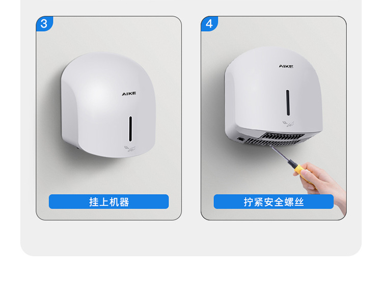 • 艾克(AIKE)不銹鋼高速干手器壁掛式自動感應干手機烘