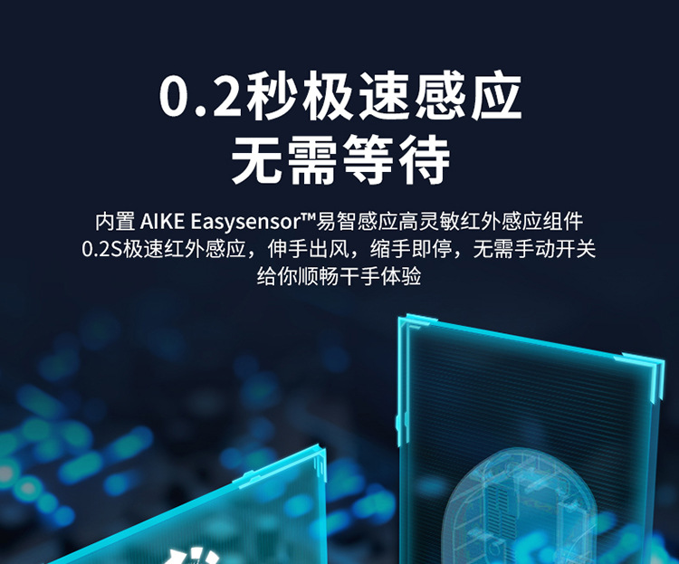 艾克(AIKE)無刷電機雙面干手器烘手機全自動感應干手