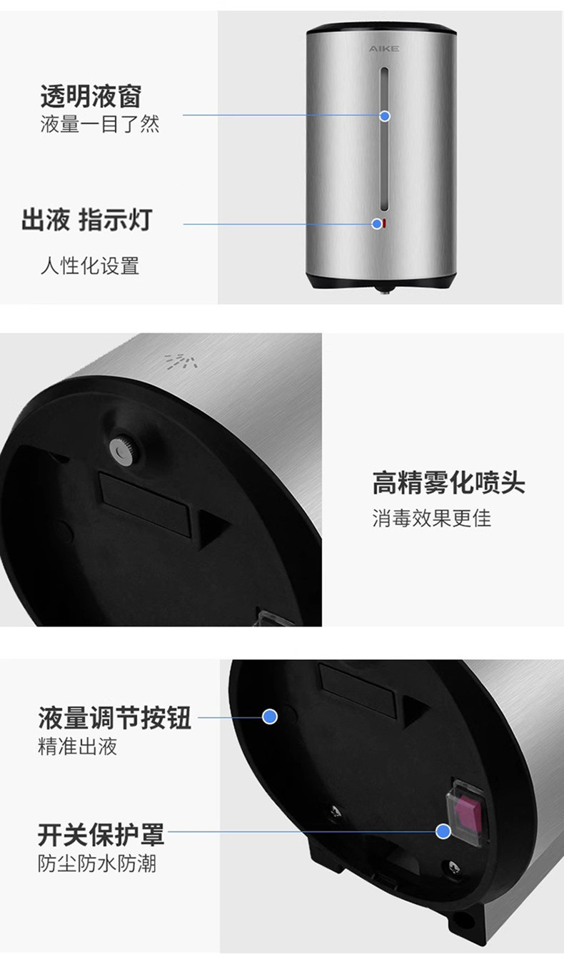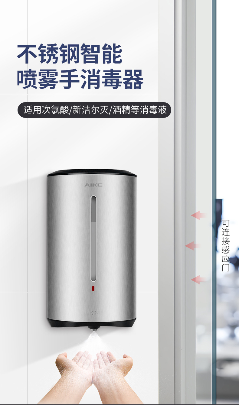 艾克(AIKE)不銹鋼酒精噴霧器手消毒器自動感應壁掛手部消毒機AK3131