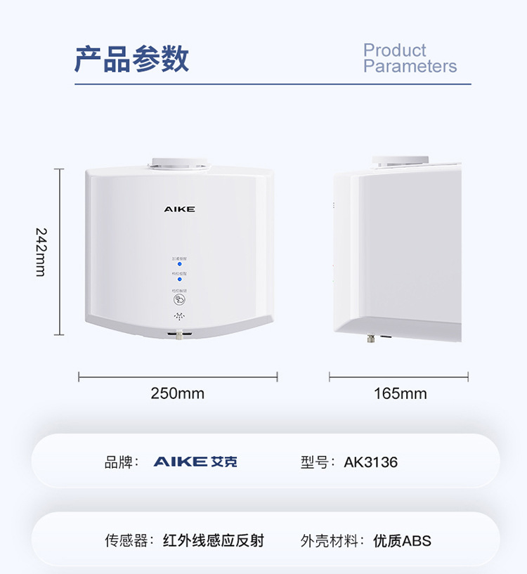 艾克(AIKE)高速干手器烘手機(jī)全自動(dòng)感應(yīng)家用商用干手