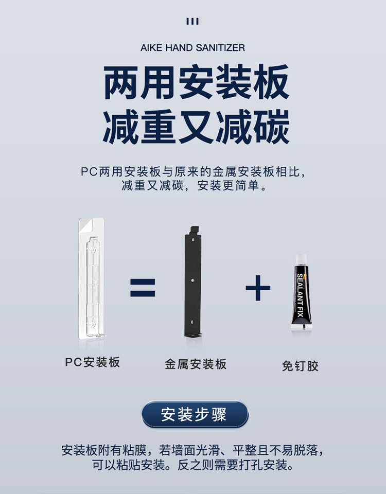 • 艾克(AIKE)不銹鋼酒精噴霧器手消毒器自動感應壁掛手