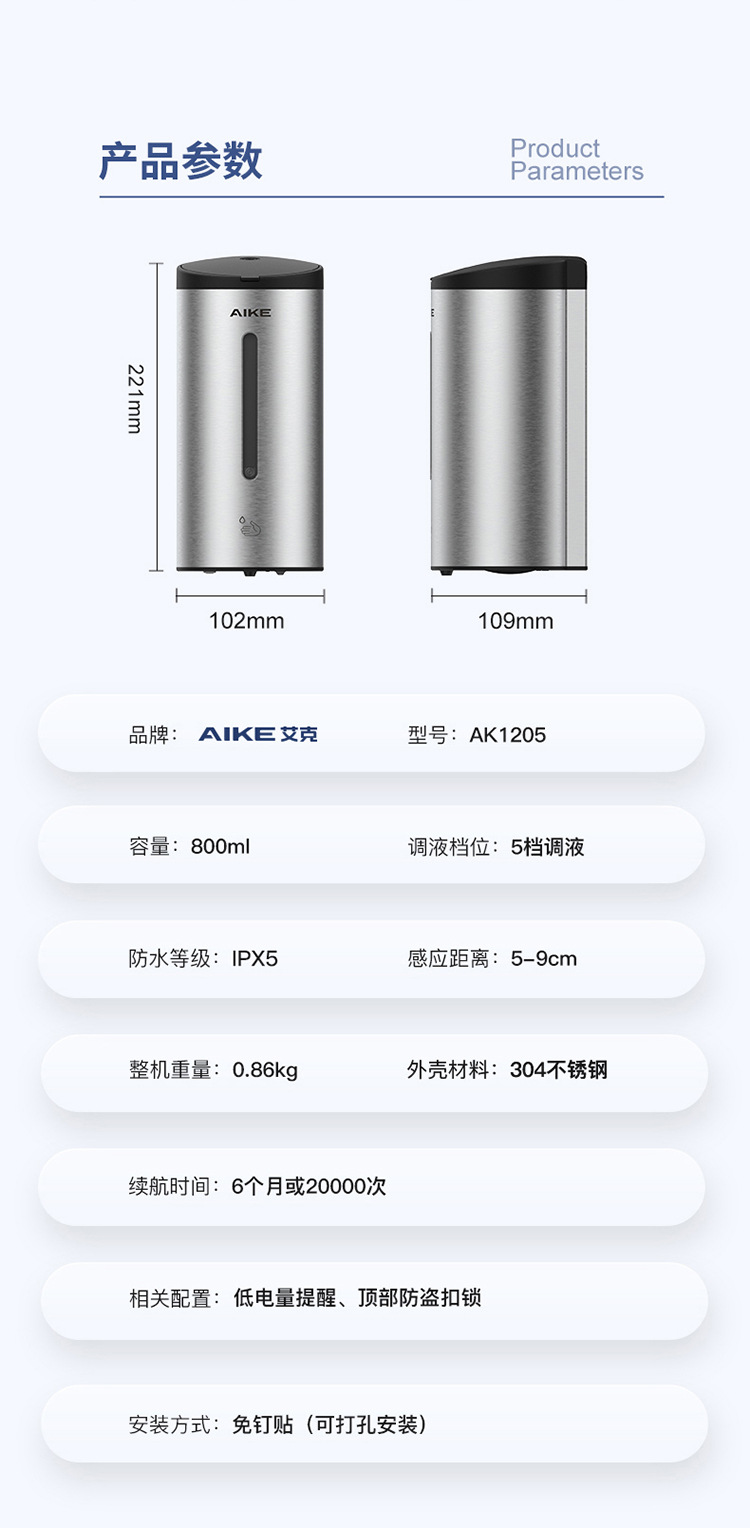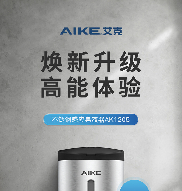 更新信息 快采購網供應商浙江艾克電器有限公司供應艾克(AIKE)自動感應皂液器壁掛式衛生間洗手液器AK1205,為您提供詳細的產品報價、參數、圖片等商品信息,本產品于2025-10-17 08:48更新,主要更新內容為:產品類別、產品參數、產品價格、產品圖片等信息。如需進一步了解艾克(AIKE)自動感應皂液器壁掛式衛生間洗手液器AK1205詳細信息,請與廠家直接聯系,并說明是在快采購網看到這條商機的。