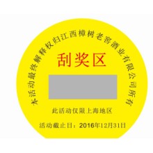 瓶蓋刮刮獎不干膠貼紙涂層揭開口獎卡加工