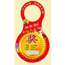 不干膠撕開式獎卡為不干膠紙與銅板紙對裱,銅板紙保證了印刷的精美而下面的不干膠紙使這種刮刮卡在瓶身上粘貼變得非常方便;該刮刮卡大的亮點就是兌獎符號在撕開口撕開的紙片的背面,使消費者兌獎或經銷點向經銷商兌獎避免了很多麻煩,該刮刮卡撕開口的正面是獎項級別、兌獎辦法與活動電話,背面是兌獎符號。